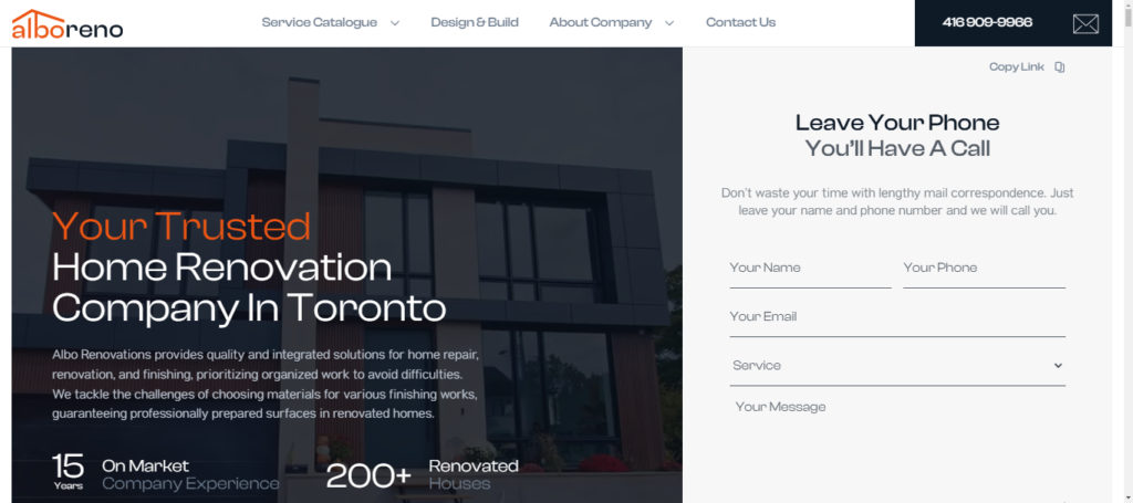 Service Pages: Dedicate separate pages for each service, such as renovations, roofing, or landscaping.